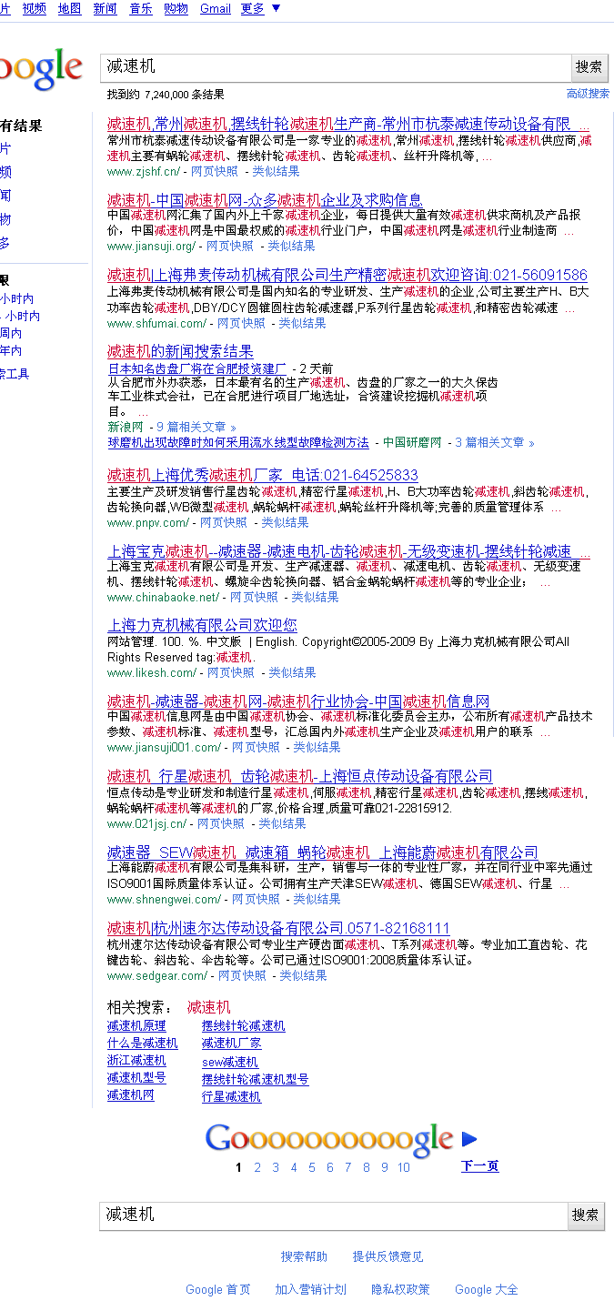 谷歌搜索引擎對(duì)本公司網(wǎng)站的收錄做了更新,輸入“減速機(jī)”,現(xiàn)在排名第八位,位于首頁(yè)下方。