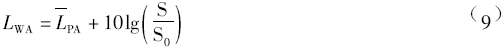式中:LWA—A計權(quán)聲功率級,dB(A);