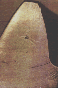 在齒輪切削過(guò)程中顯露出的由于鍛造缺陷引起的裂紋。