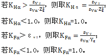 對(duì)于斜齒和弧齒錐齒輪,如計(jì)算KHα過大時(shí),應(yīng)調(diào)整設(shè)計(jì)參數(shù)及精度,使KHα及KFα不大于其當(dāng)量圓柱齒輪法截面上的端面重合度εvαn。