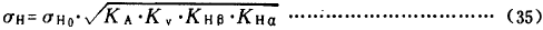 錐齒輪節(jié)圓處的計算接觸應力σH按下式確定: