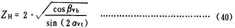 節(jié)點區(qū)域系數(shù)ZH是考慮節(jié)點處齒廓曲線半徑對接觸應力的影響,并將分度圓上切向力折算為節(jié)圓上法向力的系數(shù)。