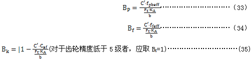 但對(duì)于斜齒輪,如計(jì)算得的KHa值過(guò)大,則應(yīng)調(diào)整設(shè)計(jì)參數(shù),使得KHa及KFa不大于εao同時(shí),式(102)和(103)僅適用于齒輪基節(jié)偏差在圓周方向呈正常分布的情況。