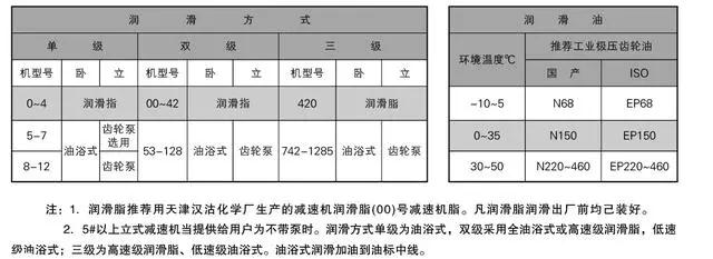 | 1.擺線針輪減速機(jī)使用連續(xù)工作制,允許正向反向運(yùn)轉(zhuǎn)。 2.輸出軸與輸入軸與其他配件配合時(shí),不允許直接錘擊,一方損壞。 3.輸出軸及輸入軸軸伸上的鍵按照普通平鍵型式的尺寸規(guī)定選用,立式減速機(jī)機(jī)座止口直徑的配合公差4.值符合公差配合h9的規(guī)定。 5.使用聯(lián)軸器與工作機(jī)械與電動(dòng)機(jī)連接時(shí)應(yīng)使軸線同心,減速機(jī)的安裝誤差不應(yīng)大于所有聯(lián)軸器的允許誤差值。 6.減速機(jī)安裝后用手轉(zhuǎn)動(dòng)靈活。 7.臥式雙軸型減速機(jī)一般輸出軸軸心線處于水平位置工作,必須傾斜使用時(shí)軸心線仰角不應(yīng)超過15(輸出軸軸伸端向下)。 8.立式減速機(jī)應(yīng)輸出軸軸伸端垂直向下使用,4#以下潤滑脂,可以水平使用。 9.安裝后的減速機(jī),正式使用前必須進(jìn)行試運(yùn)轉(zhuǎn);在空運(yùn)轉(zhuǎn)正常的情況下,再逐漸加載運(yùn)轉(zhuǎn)。 10。沖擊載荷較大、啟動(dòng)頻繁時(shí)機(jī)座與基礎(chǔ)應(yīng)自配定位銷釘,或選用液力聯(lián)軸器。 11.按照下表環(huán)境溫度選用潤滑油;若在高溫或低溫,即超出下表環(huán)境溫度(-10℃-50℃)使用,應(yīng)重新考慮潤滑劑。  |