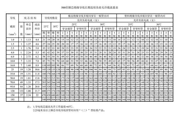 導線 從左到右依次是:電線的截面積、線芯結構、導線的明敷時環(huán)境溫度、橡皮絕緣導線穿管敷設和塑料導線穿管敷設的項目名稱,只要我們以造表格查詢就可以相應找到所需參數(shù)。不過這個只是我們作為參考的表,干事情也不能夠始終照搬硬套,因為這個表是理想狀態(tài)下的,實驗室數(shù)據(jù),在實際工作中我們還要考慮電線的機械強度等因素,實際上都是比這個表上大一個到兩個等級的。