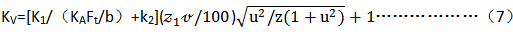 注:1)額定轉(zhuǎn)矩最大切削、壓制、沖擊轉(zhuǎn)矩。 2)額定轉(zhuǎn)矩=最大啟動(dòng)轉(zhuǎn)矩 3)額定轉(zhuǎn)矩=長時(shí)工作的最大軋制轉(zhuǎn)矩。 4)用電流控制力矩限制器。 5)由于軋制帶材經(jīng)常斷裂,可提高KA至2.0。 4.3動(dòng)載系數(shù)KV 動(dòng)載系數(shù)KV是考慮大、小齒輪嚙合振動(dòng)產(chǎn)生的內(nèi)部附加動(dòng)載荷影響的系數(shù),其值可由下式計(jì)算: 式中,K1和K2值查表4。 表4常數(shù)表K1、K2 齒輪種類 | K1 | K2 | 齒輪精度(Ⅱ組) | 各種精度等級(jí) | 5 | 6 | 7 | 8 | 9 | 直齒 | 7.51 | 14.94 | 26.81 | 39.07 | 52.85 | 0.0193 | 斜齒 | 6.68 | 13.30 | 23.87 | 34.79 | 47.06 | 0.0087 |
