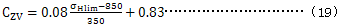 根據14.2中的規(guī)定,速度系數ZV是考慮節(jié)點線速度對齒面疲勞(點蝕)強度的影響。圖4中的速度系數曲線是節(jié)點線速度配對齒輪中較軟齒輪材料σHlim的函數。ZV­可用式(18)和式(19)計算,公式和圖4中的曲線相一致。